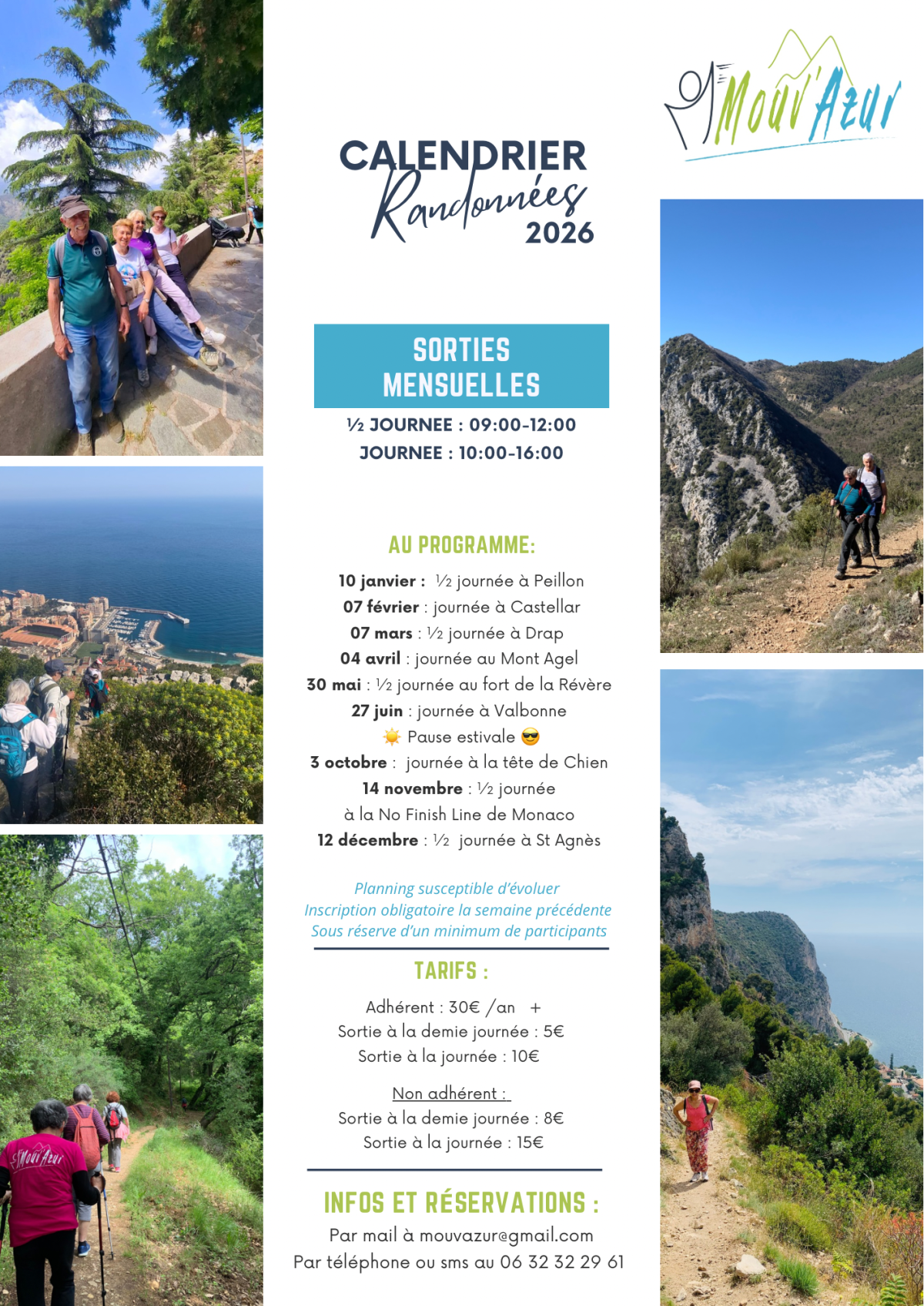 L’inscription par mail ou par téléphone est indispensable pour s’assurer de l’organisation de la sortie.